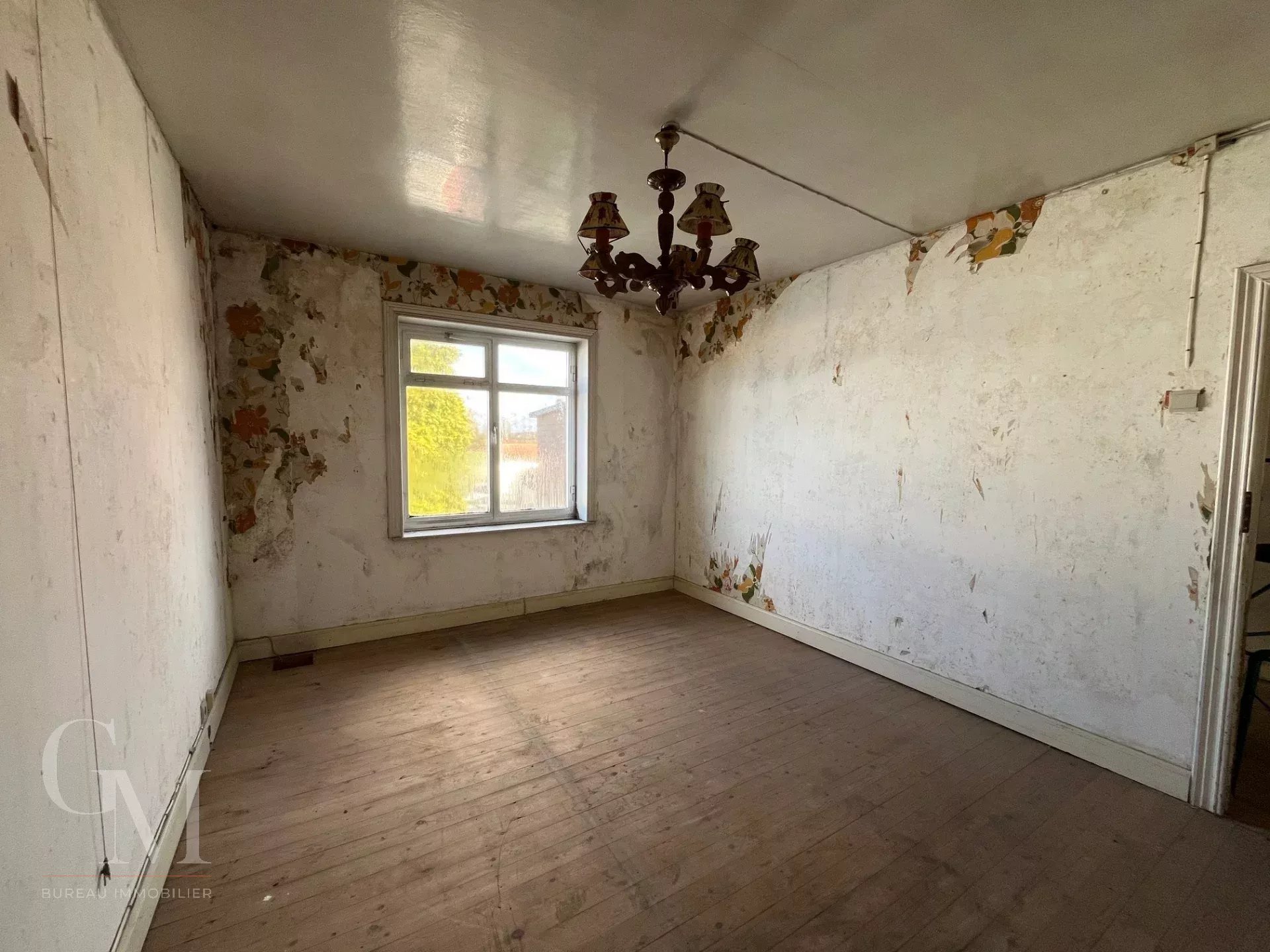 Detached house: +/- 91 m² to renovate, comprising a large living room, two bedrooms, a convertible attic, a large garage to convert (+/- 40 m²), cellars, and a courtyard.