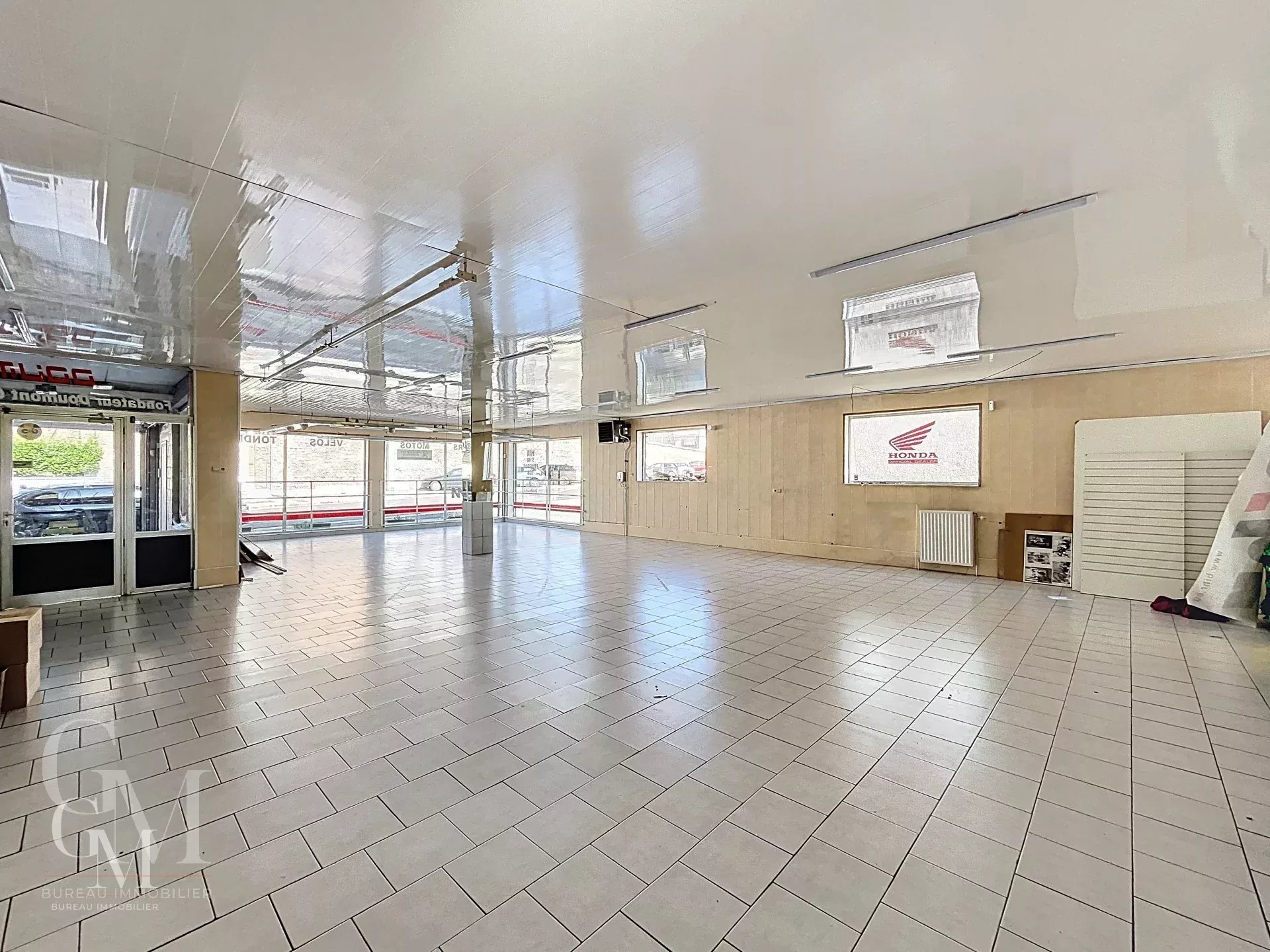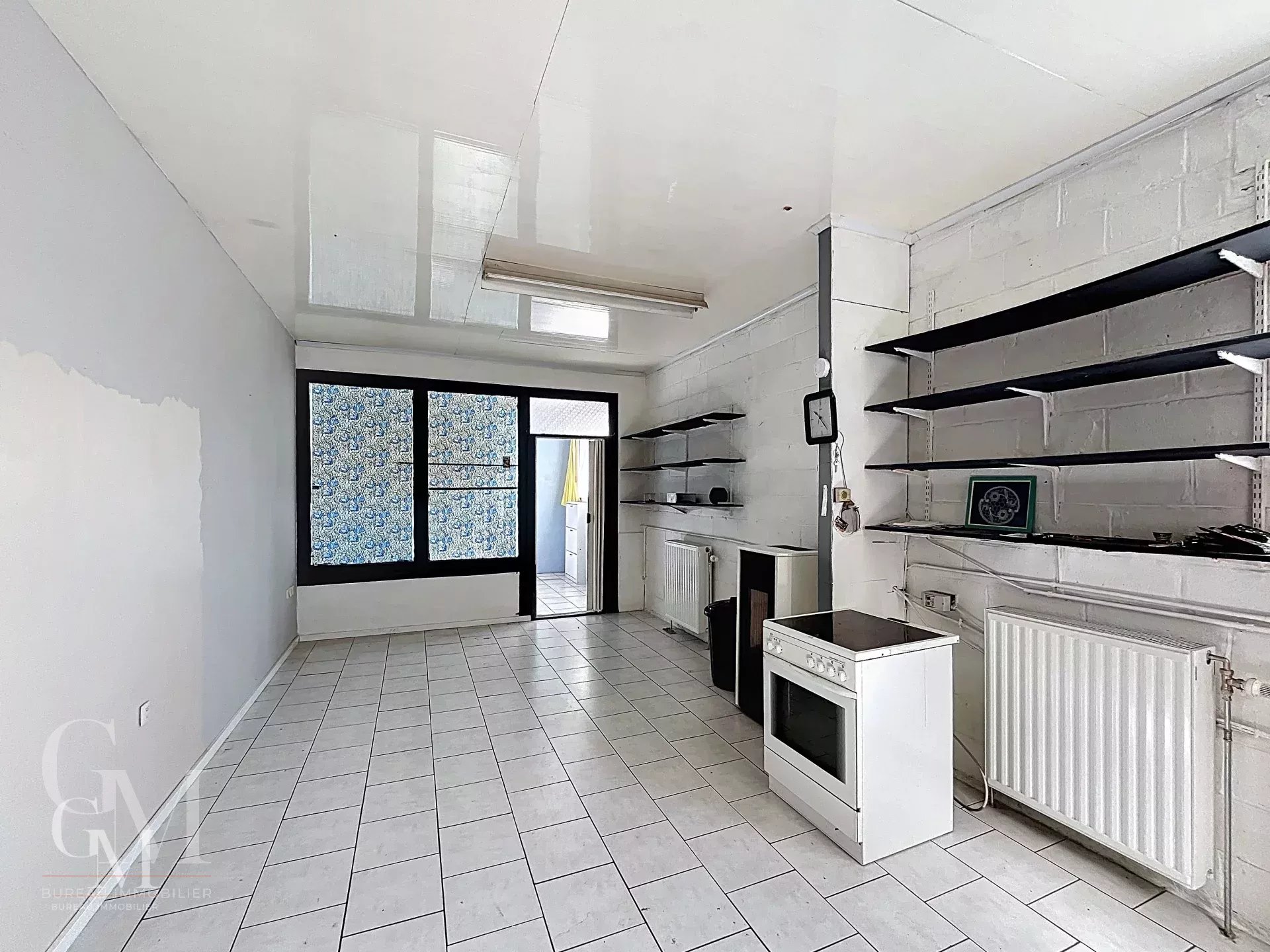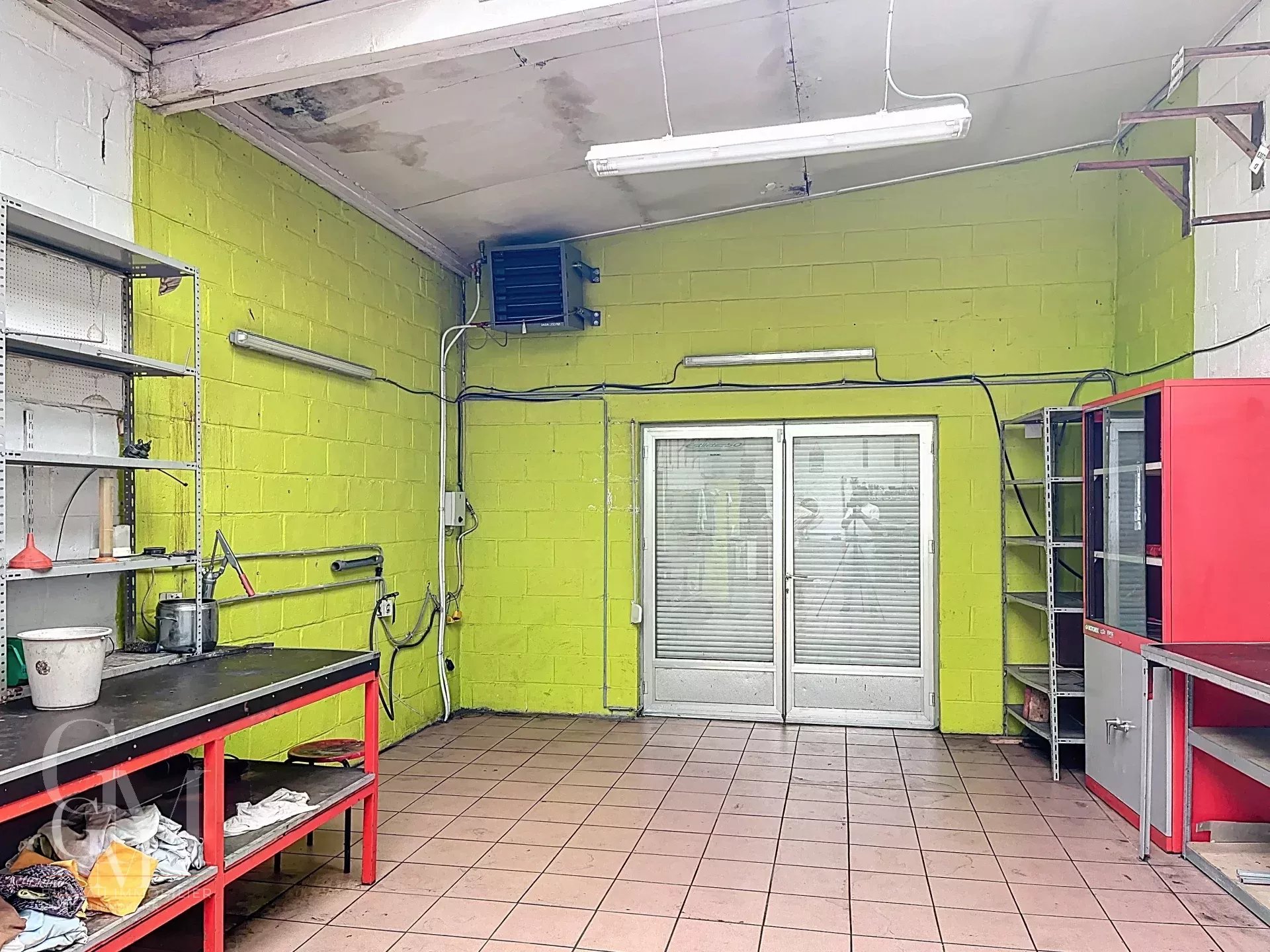 The building consists of a large, bright showroom of ± 120 m², a workshop of +/- 65 m², an office, a living area with shower and WC, and a basement warehouse (+/- 170 m²), accessible via three separate entrances. Its size and layout allow for great freedom of design, depending on the needs of your project.